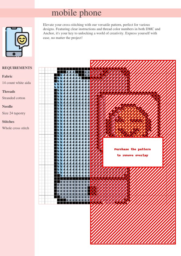 Stitch a trendy mobile phone with this easy cross-stitch pattern! Featuring clear instructions, DMC & Anchor thread codes, and an instant PDF download, this pattern is perfect for adding a modern touch to your crafting projects. Create a unique sampler, gift, or home décor piece. All skill levels welcome!