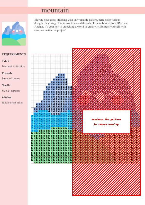 Escape to tranquility with our Majestic Mountain Range Cross Stitch Pattern! This downloadable PDF pattern is a perfect project for intermediate to advanced cross-stitchers seeking a challenging and rewarding experience. The design showcases a breathtaking mountain landscape, meticulously stitched in a serene palette of blues, greens, and earthy browns. Clear, easy-to-follow instructions and a comprehensive color chart using both DMC and Anchor thread codes ensure a smooth stitching process. The two-page PDF includes a symbol chart and a complete thread list, eliminating any guesswork. Create a stunning piece of wall art, a unique handmade gift, or a personal treasure reflecting your love for nature and craftsmanship. Download instantly and begin your serene stitching journey, transforming simple stitches into a majestic mountain vista! This pattern is ideal for experienced stitchers who appreciate intricate detail and a relaxing theme.