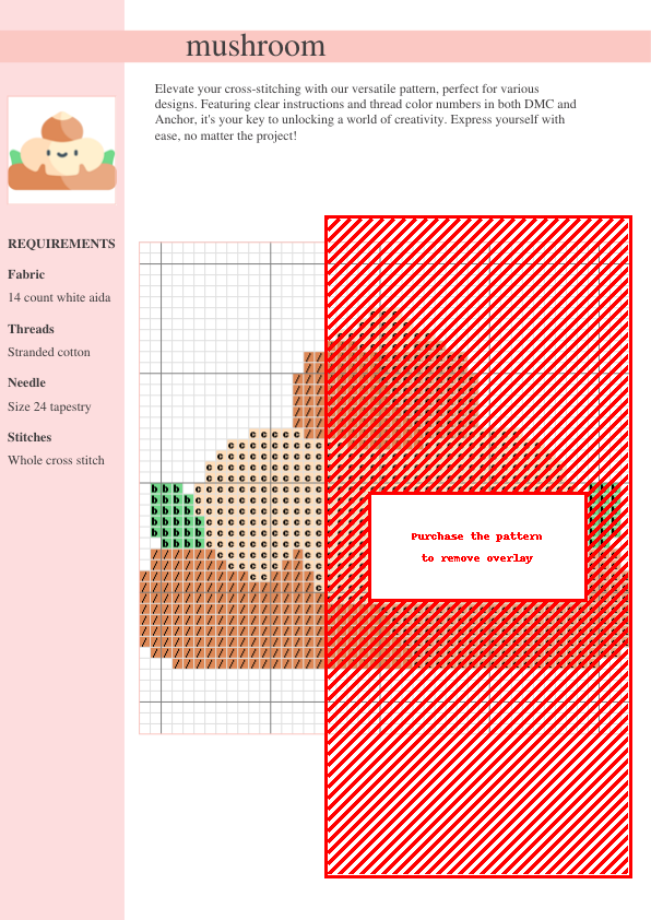 Stitch a magical forest scene with our ‘Enchanted Forest Fungi’ cross-stitch pattern! This easy-to-follow PDF pattern features a detailed mushroom design in earthy tones and includes DMC and Anchor thread color codes. Perfect for intermediate stitchers seeking a rewarding and charming project. Download instantly!
