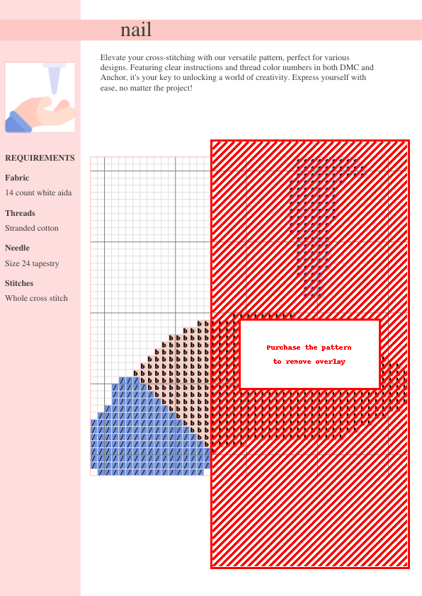 Indulge your creativity with our ‘Manicure Magic’ cross stitch pattern! This elegant design showcases a stylish interpretation of modern nail art, perfect for adding a touch of glamour to your home, creating personalized gifts, or embellishing clothing and accessories. The pattern is meticulously crafted with clear, easy-to-follow symbols and includes a comprehensive color chart featuring both DMC and Anchor thread numbers, catering to cross-stitchers of all skill levels. This downloadable, two-page PDF pattern provides a detailed chart and a complete thread list, ensuring a smooth and enjoyable stitching experience. Stitch up a glamorous masterpiece and let your creativity shine! Perfect for beginners and experienced stitchers alike, this pattern is a must-have for any modern crafter. Add a touch of unique style to your projects with this sophisticated and on-trend design.