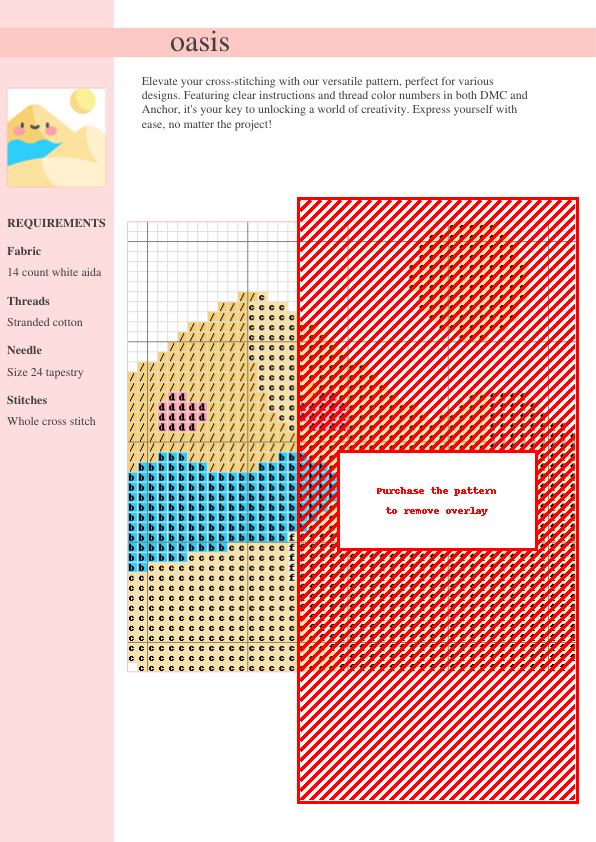 Create a serene botanical masterpiece with the ‘Oasis’ cross-stitch pattern! This easy-to-follow PDF pattern (with DMC & Anchor thread codes) offers a relaxing craft experience, resulting in a stunning, modern floral design perfect for framing, pillows, or other creative projects. Download and stitch your way to tranquility! Includes a complete color key and symbol chart.