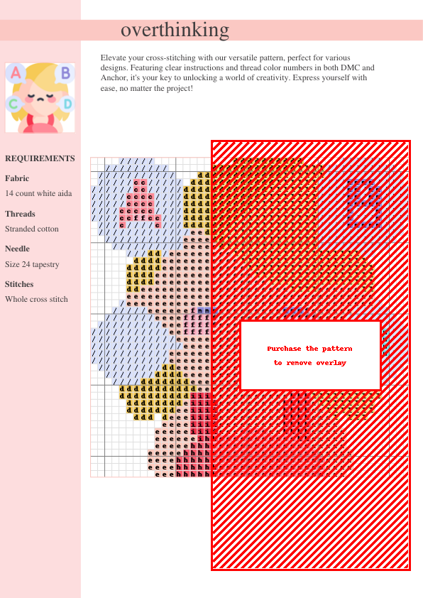 Unleash your creativity with our charming ‘Overthinking’ cross stitch pattern! This relatable design playfully captures the universal experience of overthinking, adding a quirky touch to your home or making a unique and thoughtful gift. The detailed, two-page pattern chart uses clear, easy-to-follow symbols, perfect for stitchers of all skill levels, from beginners to experienced crafters. We’ve included both DMC and Anchor thread color codes for your convenience, ensuring flexible thread selection. This instantly downloadable PDF includes the pattern chart and a comprehensive thread list. The intricate details and whimsical design lend themselves to a variety of projects, including pillows, wall hangings, ornaments, or small artwork – the possibilities are endless! Embrace the fun and create something truly special. This downloadable pattern is ideal for adding a personal touch to your crafting projects and making a memorable handmade gift. Perfect for cross-stitch enthusiasts, needlepoint lovers, and anyone who appreciates a touch of humor and whimsy in their life! Download your pattern today and start stitching!