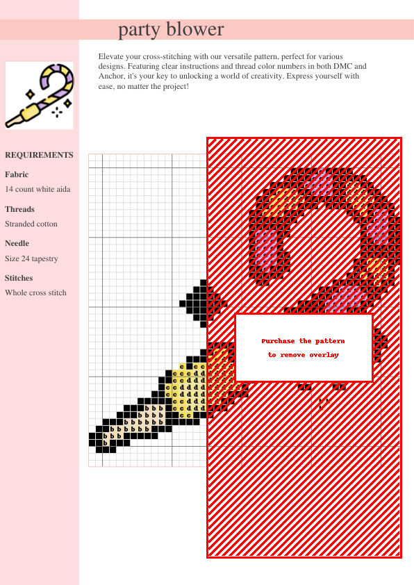 Get the party started with our adorable Party Blower cross stitch pattern! This delightful design is perfect for adding a touch of whimsical fun to your home decor, cards, or gifts. Imagine this charming blower adorning a birthday card, a festive pillow, a quirky ornament, or even a needlepoint wall hanging. The pattern offers endless creative possibilities! Our clear and easy-to-follow instructions include both DMC and Anchor thread color numbers, making it accessible for cross-stitchers of all skill levels, from beginner to expert. The intricate details of the party blower add a charming touch, while the vibrant color palette ensures a cheerful final product. This instantly downloadable two-page PDF pattern includes a color symbol chart and complete DMC and Anchor thread lists, providing everything you need to begin your stitching journey. Download your pattern today and let your creativity shine! Perfect for adding a festive touch to your crafting projects this year.