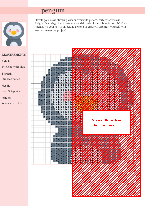 Create an adorable penguin cross-stitch with this easy-to-follow pattern! Perfect for all skill levels, it includes detailed instructions, DMC & Anchor thread color charts, and an instant digital download. Add winter charm to your home or create a unique and personalized gift! Includes both DMC and Anchor thread color keys.