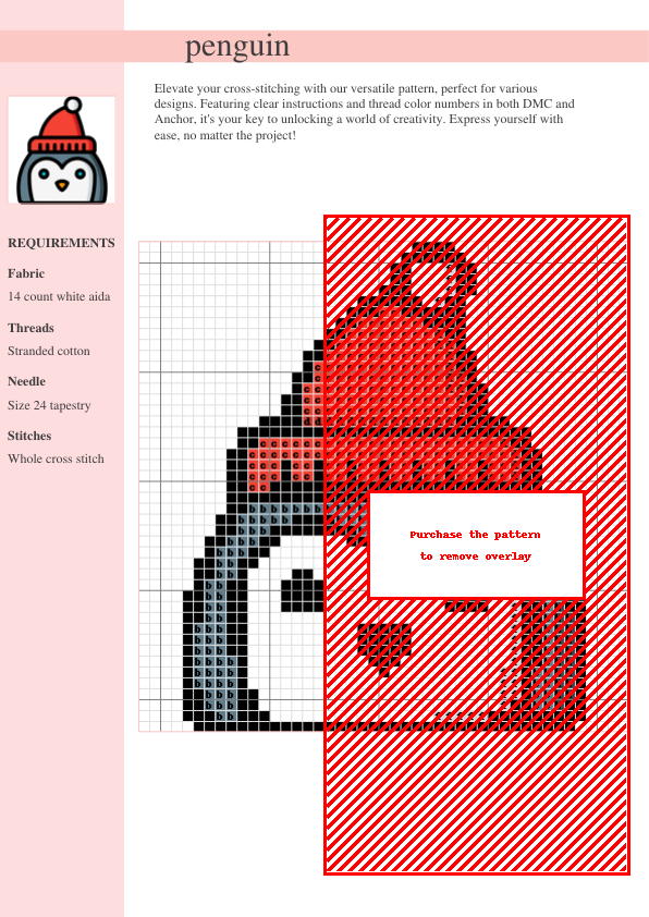 Create an adorable penguin cross stitch with our easy-to-follow pattern! This instant PDF download includes a charming design and a complete color key for DMC and Anchor threads, ensuring a seamless and enjoyable crafting experience for beginners and experienced stitchers alike. Perfect for winter-themed projects or year-round stitching fun!