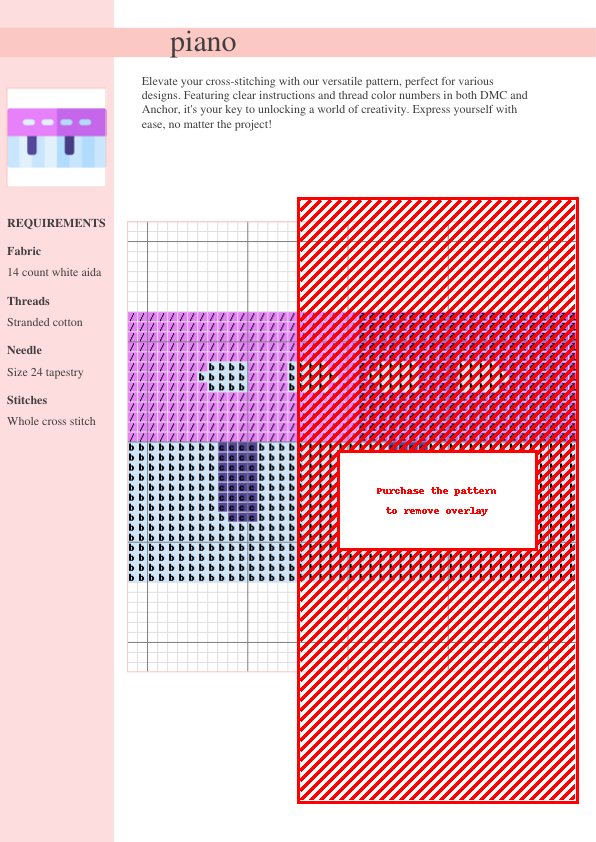 Unleash your inner artist with our exquisite Grand Piano cross stitch pattern! This downloadable PDF pattern features a meticulously detailed grand piano, perfect for adding a touch of sophisticated musical charm to your home. The pattern provides clear, easy-to-follow instructions and color charts using both DMC and Anchor thread codes, ensuring a smooth and enjoyable stitching experience. The intricate details of the piano keys, body, and subtle shading offer a rewarding challenge for intermediate to advanced cross-stitchers. Imagine this stunning piece as a unique pillow, a captivating wall hanging, or a thoughtful, handcrafted gift. Its versatility allows you to express your artistic flair in various ways. Download your pattern instantly after purchase and begin stitching your musical masterpiece! The comprehensive two-page PDF includes a symbol chart and a complete thread color key, with both DMC and Anchor thread equivalents listed for your convenience. This pattern is the perfect blend of elegant design and challenging stitchwork, ideal for experienced crafters seeking a fulfilling and beautiful project. Add a touch of musical elegance to your home décor today!
