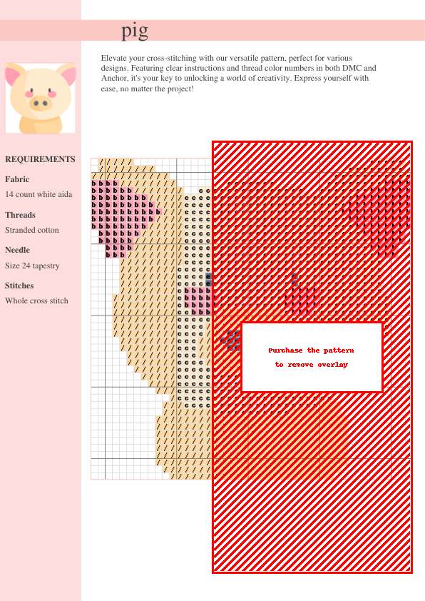 Stitch up some swine-tastic fun with our delightful pig cross-stitch pattern! This charming design is perfect for beginners and experienced stitchers alike. The pattern features a cute pig, rendered in a whimsical cartoonish style, snuggling amongst a field of colorful flowers, making it ideal for adding a touch of country charm to your home décor. The adorable piggy is wearing a tiny red bow, adding to its endearing appeal. The pattern includes a detailed chart with easy-to-follow symbols and a complete thread color key using both DMC and Anchor stranded cotton thread numbers, ensuring a stress-free stitching experience. Download your instant PDF pattern after purchase and start creating your own adorable piggy masterpiece! Perfect for pillows, wall hangings, or even a unique handmade gift for a loved one. This cross-stitch pattern is a guaranteed source of crafting joy! The color palette is predominantly pink and green with pops of yellow, red, and brown, making it a cheerful addition to any room. This pattern is perfect for adding a touch of rustic charm to your home.
