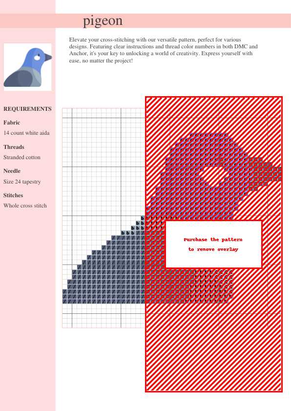 Capture the gentle beauty of nature with our delightful cross-stitch pattern featuring a charming pigeon! This versatile design is perfect for stitchers of all levels, from beginners seeking a relaxing project to experienced crafters looking for a sweet addition to their repertoire. The downloadable PDF includes a detailed color symbol key and a comprehensive thread list using both DMC and Anchor thread numbers, ensuring a smooth and enjoyable stitching experience. Imagine the lovely finished piece as a beautiful addition to your home décor, a thoughtful handmade gift, or a unique embellishment for pillows, wall hangings, or clothing. This nature-inspired pattern boasts a soft and pleasing color palette, making it a relaxing and rewarding project. Unleash your creativity and stitch your way to a beautiful, feathered friend!