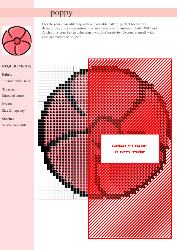Stitch a breathtaking poppy masterpiece! This easy-to-follow cross-stitch pattern features DMC and Anchor thread charts, providing a seamless crafting experience. Instant digital download – start your project today!