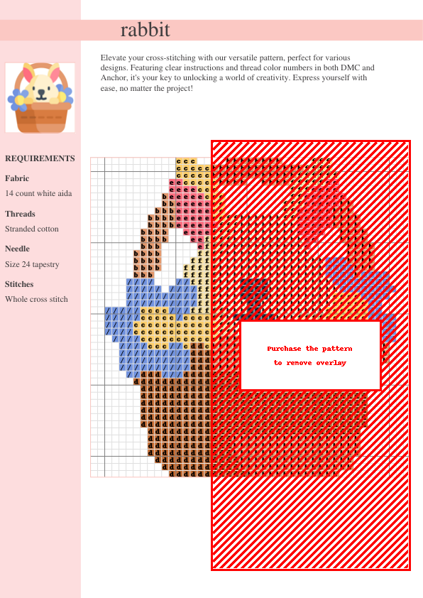 Hop into spring with our charming Bunny Cross Stitch Pattern! This delightful design is perfect for cross-stitch enthusiasts of all skill levels, from beginners seeking a fun, easy project to experienced stitchers looking for a sweet addition to their portfolio. The pattern showcases a whimsical bunny in a captivating style, ideal for adding a touch of springtime charm to your home décor. This easy-to-follow pattern includes a detailed two-page color chart using both DMC and Anchor thread numbers for a smooth stitching experience. The comprehensive instructions and thread list make gathering your supplies a breeze. Imagine this adorable bunny adorning a cozy pillow, a charming wall hanging, personalized greeting cards, or even a beautiful sampler! Unleash your creativity and stitch up some bunny love today. Download your PDF pattern instantly and bring springtime joy to your crafting! This digital pattern is perfect for Easter crafting, spring decorating, and bunny-themed projects. The pattern features pastel pink, soft blue, and creamy white threads for a truly delightful finish.