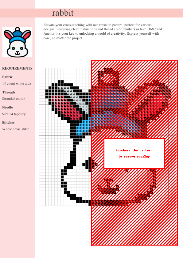 Stitch up springtime sweetness with this charming bunny cross-stitch pattern! Perfect for beginners and experienced stitchers alike, this easy-to-follow pattern features a delightful bunny design. The clear color-coded chart makes stitching a breeze, and a comprehensive thread list using both DMC and Anchor thread numbers is included for your convenience. Imagine this adorable bunny as a charming wall hanging, a thoughtful handmade gift for Easter, or a whimsical addition to a larger cross-stitch project. This instant PDF download provides immediate access to the two-page pattern: page one contains the pattern chart, and page two lists all the DMC and Anchor threads needed. Unleash your creativity and add a touch of bunny-love to your home or give a gift that shows you care. This pattern is perfect for Easter, spring crafts, or anytime you need a dose of adorable! The design is easily adaptable to various color palettes to match your personal style.