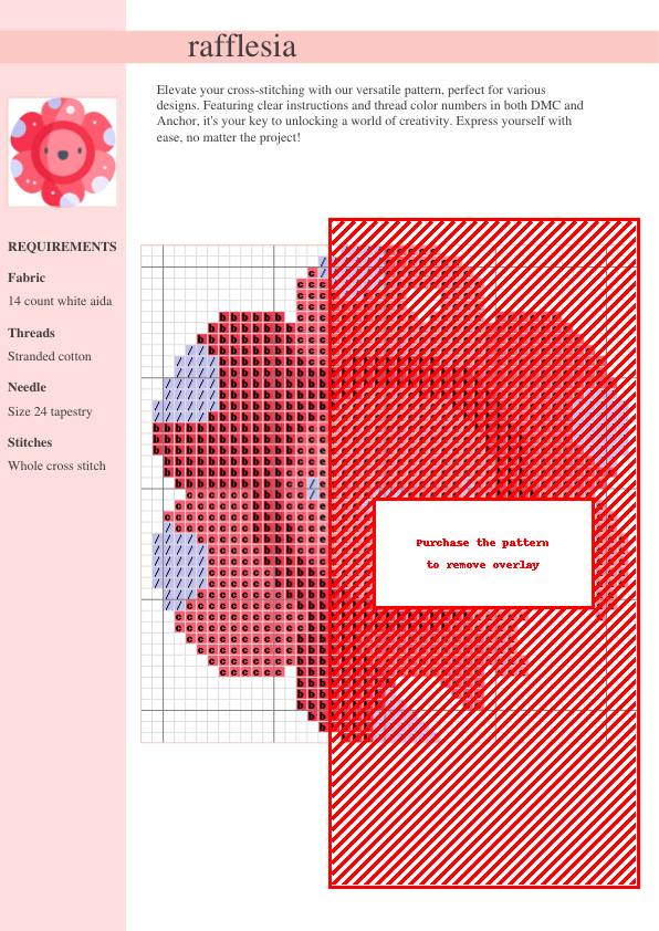 Unleash your inner artist with our breathtaking Rafflesia Cross Stitch Pattern! This downloadable PDF pattern captures the vibrant beauty of the rare and exotic Rafflesia flower in stunning detail. Meticulously crafted symbols and a comprehensive color chart guide you through the rich tapestry of reds, deep browns, and warm oranges, creating a truly captivating piece of textile art. We’ve included both DMC and Anchor thread codes for your convenience, ensuring a seamless stitching experience. Perfect for intermediate to advanced cross-stitchers seeking a challenging yet rewarding project. The intricate details of the Rafflesia’s unique structure will test your skills, resulting in a stunning finished product. Imagine framing your completed masterpiece as a captivating wall hanging, adding a unique touch to your home décor, or incorporating it into a larger textile project. Download your pattern instantly and begin your stitching adventure! This exotic botanical embroidery design is perfect for experienced stitchers seeking a challenging and beautiful project that will showcase their skill.
