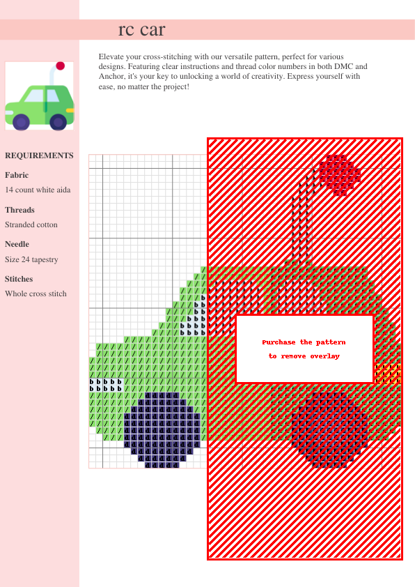 Get your needles revving with our ‘Rev Up Your Needle’ cross stitch pattern! This vibrant design features a meticulously detailed RC car, a perfect project for car enthusiasts and cross-stitch lovers alike. The pattern offers a clear, easy-to-follow chart with both DMC and Anchor thread color codes meticulously listed for both one and two strand options, ensuring a smooth and enjoyable stitching experience. Whether you’re a seasoned stitcher seeking a moderately challenging project or a beginner looking for a fun, new design, this pattern is ideal. It’s the perfect way to add a touch of automotive flair to your home décor, create a unique personalized gift, or simply enjoy the satisfying process of cross-stitching. Download your instant PDF pattern after purchase; this two-page design includes a symbol chart and a comprehensive thread color key for both DMC and Anchor brands. This pattern is suitable for intermediate stitchers and offers hours of creative fun. Let’s get stitching!