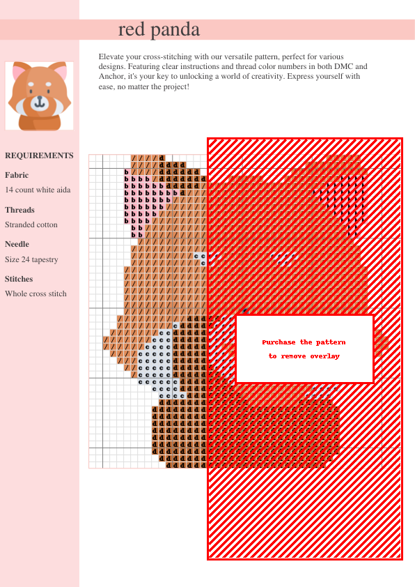 Adorable Red Panda Cross Stitch Pattern: DMC & Anchor Threads