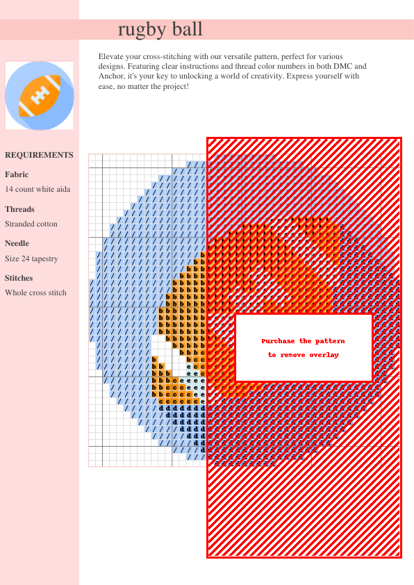 Stitch a spirited rugby ball with this easy cross stitch pattern! Includes DMC & Anchor thread color keys for a seamless crafting experience. Instant PDF download. Perfect for home decor or gifts! A fun and rewarding project for all skill levels.