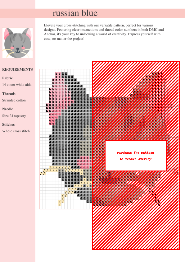Stitch up some purrfect charm with our Russian Blue Cat Cross Stitch Pattern! This enchanting design captures the serene beauty of a Russian Blue cat in exquisite detail, showcasing its silvery-blue coat and captivating gaze. The pattern provides clear, easy-to-follow instructions, including complete DMC and Anchor thread color codes, ensuring a smooth stitching experience for both beginners and seasoned cross-stitch lovers. After purchase, you’ll receive an instant download of a high-quality PDF containing the pattern chart (with symbols), a complete thread list for both DMC and Anchor threads, and helpful stitching tips. Create unique home décor, thoughtful gifts, or add a touch of feline elegance to your crafting projects. This pattern offers a challenging yet rewarding project for needlepoint enthusiasts, and is also an excellent choice for beginners wanting to improve their needlepoint skills. Embark on a relaxing crafting journey and create a stunning piece of art that will be treasured for years to come. The subtle color palette and intricate details make this a sophisticated addition to any home or a unique and memorable gift. Download your pattern instantly and start stitching today!