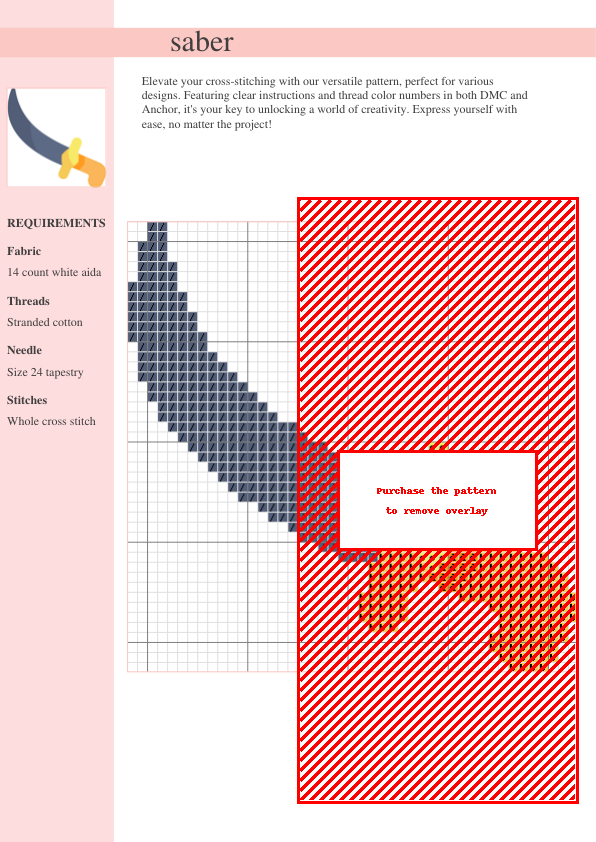 Embark on a thrilling crafting journey with our ‘Saber’ cross-stitch pattern! This captivating design features a majestic lightsaber, radiating intergalactic energy, perfect for adding a touch of sci-fi flair to your home, gifts, or personal projects. The pattern is meticulously crafted with clear, easy-to-follow instructions and a comprehensive color chart utilizing both DMC and Anchor thread numbers for ultimate convenience. Experience the satisfaction of bringing this stunning intergalactic masterpiece to life! The downloadable PDF includes a full-color chart, a detailed symbol key, a complete list of DMC and Anchor thread codes, and helpful tips for an enjoyable stitching process. The vibrant colors and intricate details make this pattern ideal for all skill levels, from beginner to expert. Unleash your inner Jedi and create a unique personalized piece or a memorable gift for Star Wars fans and craft enthusiasts alike. Instant download for immediate crafting fun!