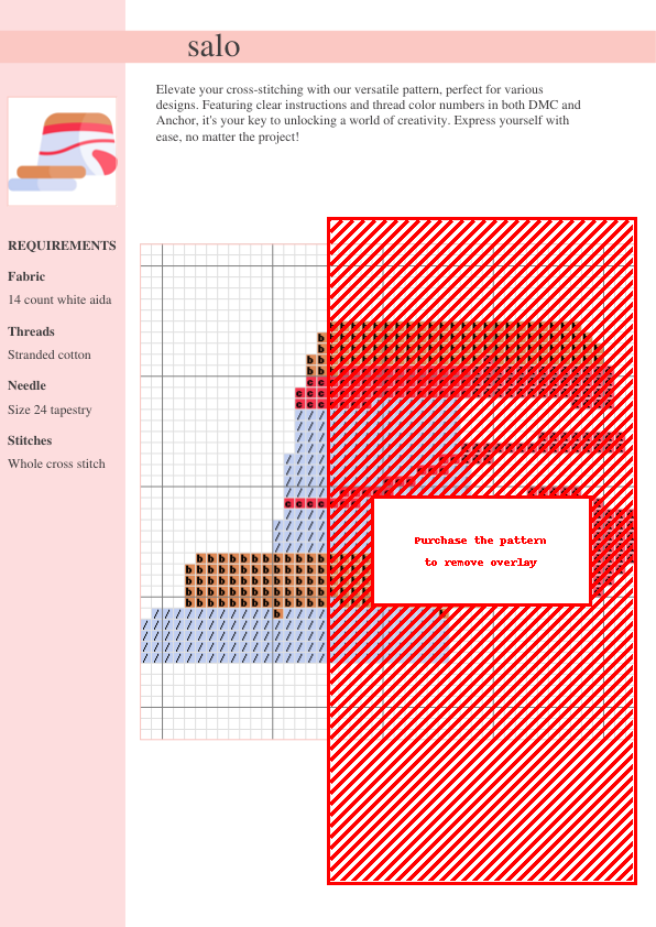Unleash your creativity with the ‘Salo’ cross-stitch pattern – a stylish and contemporary design perfect for stitchers of all skill levels! This versatile pattern features a sophisticated aesthetic, making it ideal for adding a touch of understated elegance to your home décor, crafting unique personalized gifts, or simply enjoying the meditative process of stitching. The meticulously crafted chart uses clear, easy-to-follow symbols and conveniently includes both DMC and Anchor thread color codes for effortless thread selection. Download your two-page PDF instantly after purchase and embark on your stitching adventure! The pattern includes a full-color chart, a comprehensive thread list, and detailed instructions, making it a truly delightful needlepoint project for craft enthusiasts and cross-stitch lovers alike. Experience the rewarding satisfaction of bringing ‘Salo’ to life with your needle and thread!