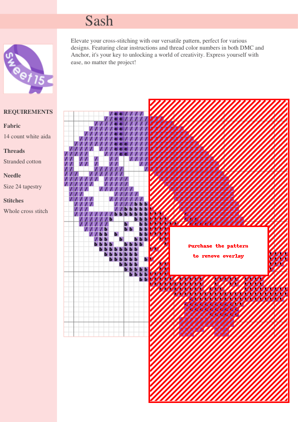 Unleash your inner artist with our enchanting Versatile Floral Sash Cross Stitch Pattern! This downloadable PDF pattern is a delightful blend of elegance and versatility, perfect for adding a personalized touch to any project. Imagine the soft pastel hues of pink, lavender, and mint green blooming across your tote bags, pillows, wall hangings, or even clothing! The charming repeating floral motif is designed for easy adaptability, allowing you to create a delicate accent or a bold statement piece, depending on your preference. We’ve meticulously crafted clear instructions and comprehensive color charts, listing thread numbers for both DMC and Anchor brands for your convenience. Enjoy the satisfying stitch of intricate details, from subtly shaded petals to realistically textured leaves. Whether you’re a seasoned cross-stitcher or a beginner looking for a rewarding project, this pattern offers a delightful stitching experience. Download instantly and begin creating your beautiful, personalized masterpiece today! Perfect for gifts, home decor updates, and adding a unique touch to your next crafting adventure.