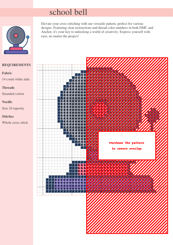 Ring in the new school year with our adorable School Bell Cross Stitch Pattern! This charming design is perfect for adding a touch of nostalgic whimsy to your home, creating personalized gifts, or embellishing projects like wall hangings, pillow covers, or tote bags. The meticulously detailed school bell features intricate stitching elements that provide a satisfying crafting experience for cross-stitchers of all skill levels. This easy-to-follow, instantly downloadable two-page PDF pattern includes clear instructions and a color chart featuring DMC and Anchor stranded cotton thread colors. Symbols are used for easy stitch referencing, ensuring a smooth and enjoyable stitching process. A complete thread list is also provided for your convenience. Whether you’re a seasoned stitcher or a beginner, this pattern is ideal for back-to-school themes, teacher gifts, or adding a playful touch to your home décor. Download your pattern today and capture the spirit of learning and fun! Perfect for autumn crafts and fall decorating.