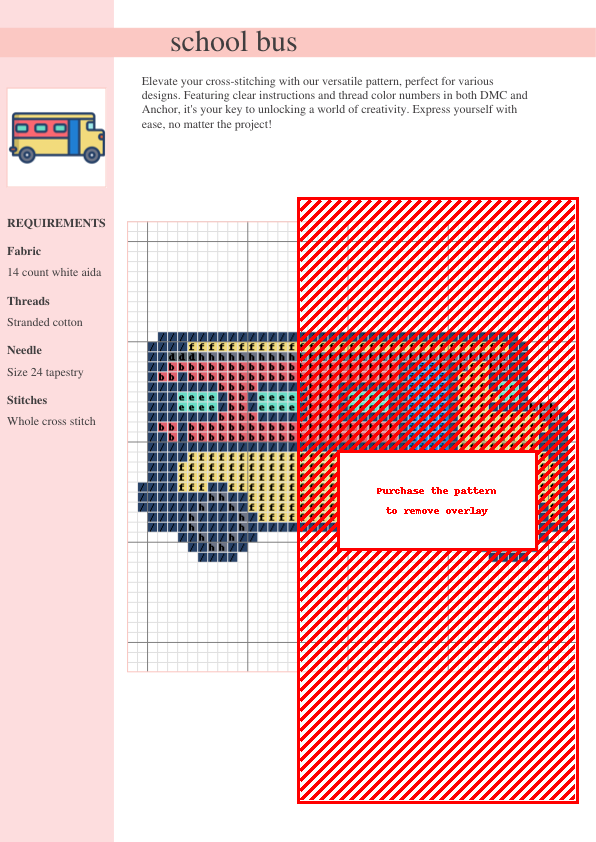 Embark on a nostalgic crafting adventure with our adorable School Bus cross-stitch pattern! This charming design is perfect for adding a touch of playful energy to your home, creating unique personalized gifts, or simply showcasing your cross-stitch expertise. The detailed illustration of a cheerful school bus, brimming with personality, features intricate details that make it a delightful project for all skill levels, from beginners to seasoned crafters. We’ve prioritized ease of use with clear, easy-to-follow instructions and included both DMC and Anchor thread color codes for a seamless stitching experience. Your instant digital download includes a two-page PDF: one page displays a color-coded symbol chart, and the other lists all necessary DMC and Anchor thread numbers. This fun and engaging project is ideal for adding a touch of childhood magic to your stitching projects. Download your pattern today and let the creative fun begin! Perfect for cross stitch beginners, handmade gifts, home decor, needlepoint enthusiasts, kids crafts, and embroidery lovers.