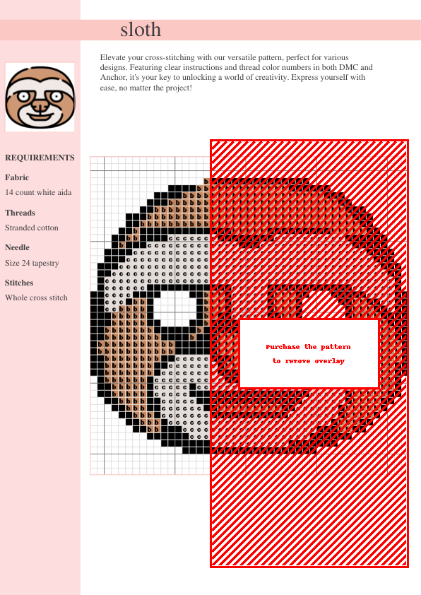 Unleash your inner artist with our charming Sloth Cross Stitch Pattern! This delightful design is perfect for both beginner and experienced cross-stitchers. Featuring a cuddly sloth nestled amongst calming greens, browns, and creams, this pattern offers a relaxing and rewarding stitching experience. The detailed PDF download includes a complete color key with DMC and Anchor thread numbers for easy reference, ensuring a seamless crafting process. Two easy-to-follow pages with clear symbols and a comprehensive thread list make stitching a breeze. Its simple yet captivating design makes it ideal for relaxing evenings, creating a heartwarming piece for your home, a thoughtful handmade gift, or incorporating into a larger cross-stitch project. Imagine the charming addition this sloth will bring to your home decor, framed and displayed proudly, or stitched into a cozy blanket or pillow. Stitch your own slice of jungle serenity! Download your pattern instantly and start crafting today!