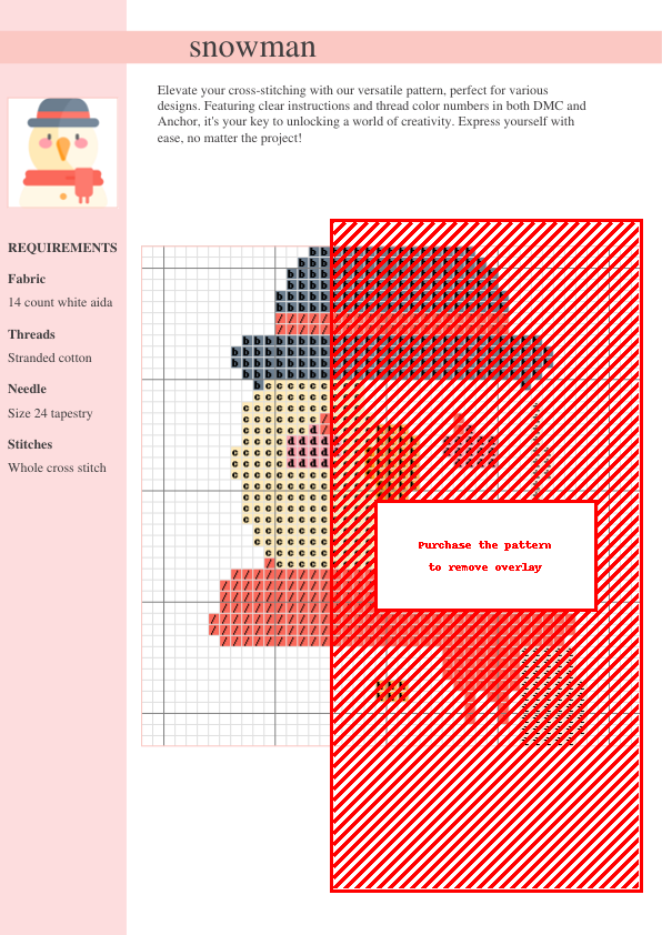 Bring the magic of winter to life with our enchanting Snowman Cross Stitch Pattern! This delightful design features a charming snowman, expertly blending simplicity and intricate detail, perfect for cross-stitchers of all skill levels. The pattern is incredibly easy to follow, with clear instructions and corresponding DMC and Anchor thread color numbers for a seamless stitching experience. Imagine the cozy joy of stitching this cute snowman, ideal for creating festive ornaments, heartwarming wall hangings, or adding a whimsical touch to a larger winter-themed sampler. This downloadable PDF pattern includes a detailed symbol chart, a comprehensive thread list (with DMC and Anchor equivalents), easy-to-follow instructions, and a pleasing color palette that captures the essence of a snowy winter day. The design features [mention specific details like scarf, buttons, hat etc. if applicable]. Whether you’re a beginner seeking a fun project or an experienced stitcher looking for a charming design, this pattern is the perfect way to add a touch of festive cheer and create a heartwarming winter keepsake. Stitch up your own winter wonderland today!