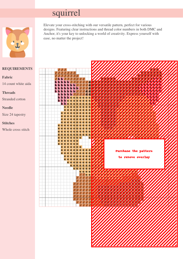 Bring the charm of the woodland into your home with this delightful cross-stitch pattern featuring an adorable squirrel! This design is perfect for adding a whimsical touch to your home decor, creating a heartwarming gift, or simply enjoying a relaxing crafting project. The pattern showcases a charmingly detailed squirrel, rendered in a style that’s both intricate and accessible to beginners and experienced stitchers alike. We’ve included a comprehensive color key using both DMC and Anchor thread codes for seamless stitching, regardless of your preferred brand. This instant PDF download includes: a clear, two-page pattern chart with symbols; a complete thread color code list for both DMC and Anchor threads; easy-to-follow instructions; and a suggested fabric recommendation. Create a beautiful and unique piece of needlepoint art! This charming design makes a wonderful gift for animal lovers and craft enthusiasts. Download your pattern today and let the stitching begin!
