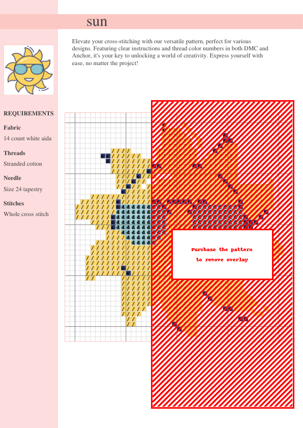 Stitch a radiant sunburst with our easy-to-follow Sunny Day Cross Stitch Pattern! This downloadable PDF pattern includes DMC and Anchor thread color codes, providing a satisfying and cheerful crafting project. Download instantly and brighten your day with this vibrant embroidery design!