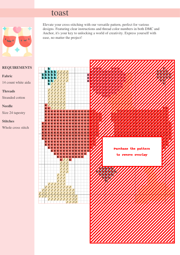 Bring the warmth of a cozy kitchen into your home with our delightful ‘Buttered Toast’ cross-stitch pattern! This charming design features a perfectly golden-brown slice of buttered toast, capturing the simple pleasures of everyday life. The pattern is presented as a clear, easy-to-follow two-page PDF, including a complete color chart with corresponding DMC and Anchor thread numbers for precise stitching. Both a symbolic chart and a full thread list are provided for your convenience. The intricate details of the toast’s texture and the subtle highlights of the butter are beautifully rendered, making this a rewarding project for cross-stitchers of all skill levels. Whether you’re a beginner looking for a relaxing project or an experienced stitcher seeking a charming addition to your repertoire, this pattern is perfect. Imagine the cozy feeling this finished piece will bring to your kitchen wall, or as a charming addition to a tea cozy, pillow, or even a tote bag! Download your pattern instantly after purchase and start stitching your slice of happiness today. This pattern makes a unique and thoughtful handmade gift for fellow crafting enthusiasts.