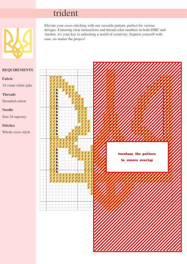 Dive into a captivating world of nautical artistry with our exquisite Trident Cross Stitch Pattern! This majestic design features a powerful trident, symbol of the sea, rendered in a stunning color palette. The pattern provides clear, easy-to-follow instructions and color codes for both DMC and Anchor threads, ensuring a smooth stitching experience for all skill levels. Perfect for experienced stitchers seeking a challenging project or beginners looking to create a striking piece. This downloadable PDF pattern (instant access after purchase) spans two pages, offering a detailed chart and comprehensive thread list. Create a stunning piece of wall art, a unique gift, or a beautiful addition to your cross-stitch collection. Unleash your creativity and bring the ocean’s might into your home with this exceptional design. Features a bold and beautiful design ideal for nautical themes, mythical creatures, or anyone seeking a rewarding cross stitch project.