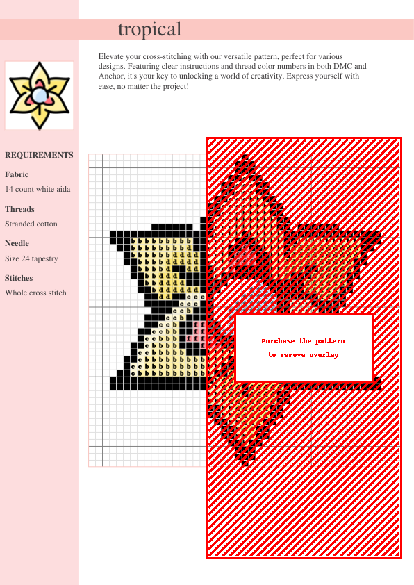 Escape to a vibrant tropical paradise with this enchanting cross stitch pattern! This design bursts with lush, exotic flowers and foliage, creating a stunning piece of needlepoint art. Perfect for adding a touch of exotic beauty to your home, this pattern is equally ideal for creating unique gifts or personalizing clothing and accessories. The clear, easy-to-follow instructions and detailed color chart (using both DMC and Anchor thread numbers) make it accessible to cross-stitchers of all skill levels, from beginners to experienced hobbyists. Appreciate the intricate details and the breathtaking color palette featuring rich jewel tones and sunny yellows. This downloadable PDF pattern instantly provides both a pattern chart and thread list neatly presented across two pages for your convenience. Unleash your creativity and stitch your own slice of tropical heaven! Imagine this design adorning a pillow cover, wall art, a tote bag, or even adding a personal touch to a clothing item. Stitch your own piece of paradise today!