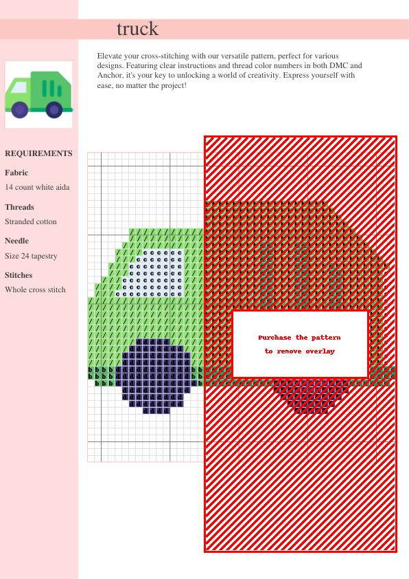 Embark on a charming cross-stitch journey with our delightful Vintage Truck pattern! This downloadable PDF pattern is perfect for adding a touch of rustic elegance to your home decor, gifts, or personal projects. The design features a beautifully detailed vintage truck, complete with weathered wood and charming details, offering a satisfying stitching experience for crafters of all skill levels. Imagine the cozy feeling of this finished piece, a perfect addition to a farmhouse aesthetic, a gallery wall, or a thoughtful, handmade gift. The pattern includes a clear, easy-to-follow chart with symbols and a complete thread color key using both DMC and Anchor thread numbers for your convenience. This meticulously crafted design is presented on two pages for easy viewing and printing. The color palette evokes a sense of nostalgia and warmth, perfect for fall or year-round enjoyment. The pattern is ideal for beginners and experienced stitchers alike, providing a relaxing and rewarding crafting experience. Download your pattern instantly and start stitching your own nostalgic masterpiece! This heartwarming design is perfect for creating unique gifts or adding a touch of rustic charm to your home.
