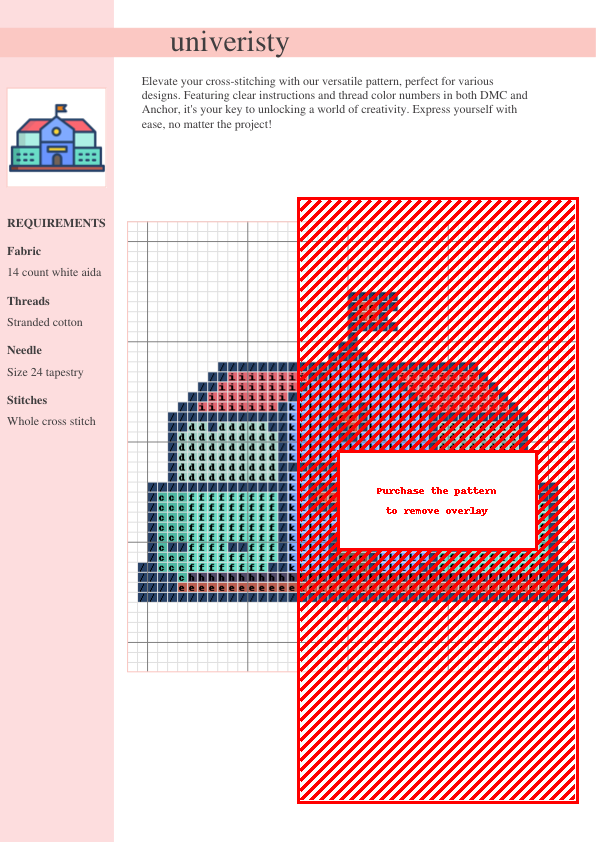 Celebrate your school pride with this charming University-themed cross stitch pattern! Featuring a graduation cap, book, and scroll, this easy-to-follow design includes DMC & Anchor thread color codes for effortless stitching. Instant PDF download – personalize with your school colors! Perfect for gifts or personal enjoyment.