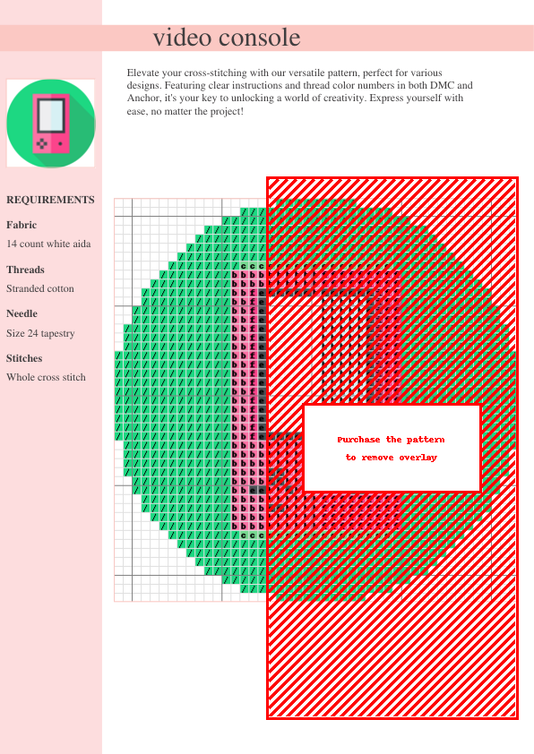 Stitch a pixel-perfect retro gaming console! This downloadable PDF cross-stitch pattern includes easy-to-follow instructions and color charts (DMC & Anchor threads). A fun project for all skill levels, creating a unique, handmade piece perfect for gamers and crafters!