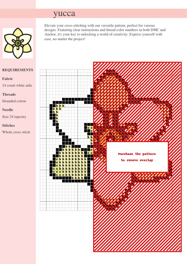 Bring the tranquil beauty of the desert indoors with our captivating Yucca Plant Cross Stitch Pattern! This downloadable PDF pattern is perfect for intermediate cross-stitchers who love modern botanical designs. The elegant yucca plant is depicted in a serene palette of greens, creams, and browns, creating a sophisticated and calming aesthetic. This easy-to-follow pattern includes a clear cross stitch chart with symbols, a comprehensive thread list with both DMC and Anchor stranded cotton thread numbers, and detailed instructions for a smooth stitching experience. Create a stunning wall hanging, a charming pillow cover, a unique sampler addition, or a thoughtful handmade gift. This rewarding project is ideal for intermediate stitchers looking for a challenging yet satisfying design. Download your pattern today and start stitching this beautiful botanical masterpiece! Perfect for expanding your cross-stitch skills and adding a touch of modern desert charm to your home or gifting a beautiful handmade creation.